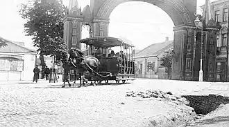 Im Juni 1893 beschloss die Stadtregierung den öffentlichen Nahverkehr mit einer Pferdestraßenbahn nach dem Vorbild der Städte Warschau, Sankt Petersburg und Paris einzuführen. Der Bau der Gleise wurde 1893 an Feldzer vergeben, der die Arbeiten nach zwei Jahren abschloss, sodass 1895 die ersten Pferdestraßenbahnen für den Transport von Personen und Gepäck verkehren konnten. Die Bahn setzte im Sommer 23 Sommerwagen ohne Seitenwände ein, im Winter 16 geschlossene und beheizte Winterwagen.[1]