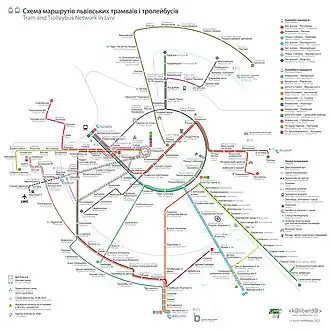 - ↑ a b Netzplan ( vom 22. Februar 2017 im Internet Archive) , historische Netzpläne ( vom 18. November 2010 im Internet Archive) und Linienliste ( vom 6. März 2017 im Internet Archive) (ukrainisch), abgerufen am 21. Februar 2017