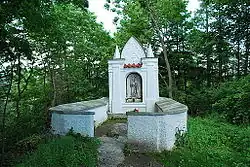- Burgstall Hrad u Strašína auf dem Na výškách bei Lazny. Die Burg wurde wahrscheinlich in der zweiten Hälfte des 13. Jahrhunderts als Schutzburg der Witigonen erbaut. Vermutlich wurde sie wegen des Verkaufs des Gutes Strašín durch Witiko II. nie vollendet. Ein Name der Burg ist nicht überliefert, bei Sommer wird sie jedoch mit Kroholetz, auch Gunthery-Hain bezeichnet.[8] Erhalten sind eine 0,8 m hohe Trockenmauer sowie Reste eines Grabens und Walles.