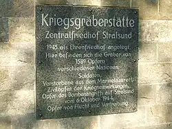 Der Erste Weltkrieg und der Zweite Weltkrieg brachten auch für Stralsund eine hohe Zahl an Toten. Die Toten des Ersten Weltkriegs wurden wahrscheinlich im westlichen Teil des Friedhofs bestattet, allerdings ist nach der Umgestaltung der Anlagen nichts erhalten geblieben. 1944 wurde im nördlichen Teil ein Kriegsgräberfeld angelegt.