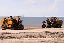Eine außersportliche Anwendung waren Strandreiniger, die zur Reinigung von Stränden nach der Ölpest im Golf von Mexiko 2010 verwendet wurden.[3] Die dabei am Golf von Mexiko eingesetzten Maschinen stammen unter anderem von der Firma Cherrington aus North Dakota, wo es keine Strände gibt.[3] Sie sind gewöhnlich zur Reinigung von touristischen Stränden von menschlichen Hinterlassenschaften wie Zigarettenkippen und Glasscherben und zur Entfernung von scharfkantigen Muschelschalen unterwegs.[3] Kleinere Maschinen reinigen Sand auf Kinderspielplätzen und in Sandkästen.[4]