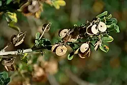 Es wird eine kleine, spiralig eingewundene, kringelige, geaderte und mehrsamige, nicht öffnende, abgeflachte Hülsenfrucht gebildet. Die bräunlichen Samen sind leicht nierenförmig.