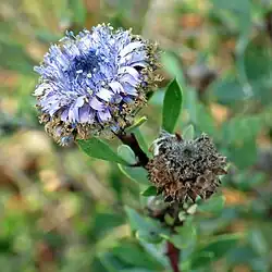 Die Strauchige Kugelblume (Globularia alypum) gehört zur Gattung der Kugelblumen (Globularia) und damit zur Familie der Wegerichgewächse (Plantaginaceae).