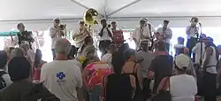 - Rhythmusgruppe: Schlagzeug (bzw. Große Trommel, Kleine Trommel und Becken) und Tuba (heute z. T. auch Sousaphon)