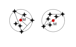 Der mittlere Treffpunkt kann als der gemeinsame Schwerpunkt aller Geschosse aufgefasst werden, die den Streukreis bilden. Die Geschosse werden dabei vereinfacht als massebehaftete Punkte betrachtet.