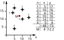 Der mittlere Treffpunkt kann aus den Koordinaten der Treffer ermittelt werden. Die Treffer werden dazu auf einem beliebig dimensionierten Koordinatensystem abgebildet. Die x-Werte der Treffer werden summiert, ebenso die y-Werte. Die Summen werden durch die Anzahl der Schüsse dividiert. Das Ergebnis sind die Koordinaten des mittleren Treffpunktes.