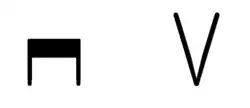 Symbole: links für Abstrich (Frosch-Symbol), rechts für Aufstrich (Spitze-Symbol). Sie werden über die Noten geschrieben.
