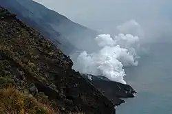 Am 3. Juli 2019 kam es zu einer ungewöhnlich starken Eruption mit Ausbildung einer mehrere Kilometer hohen Asche- und Rauchwolke.[8][9] Der Ausbruch forderte dabei ein Menschenleben, mehrere Personen wurden durch herabstürzende Gesteinsbrocken leicht verletzt. Auf eigenen Wunsch wurden etwa 70 Touristen aus Ginostra vorsorglich evakuiert. Infolge des Ausbruches ergossen sich zwei pyroklastische Ströme von der Sciara del Fuoco ins Meer. Herabfallende Lapilli verursachten mehrere kleinere Brände, die mit Löschflugzeugen bekämpft wurden. Laut dem Nationalen Institut für Geophysik und Vulkanologie in Rom war es die schwerste Eruption des Stromboli seit 1985.[10][11]