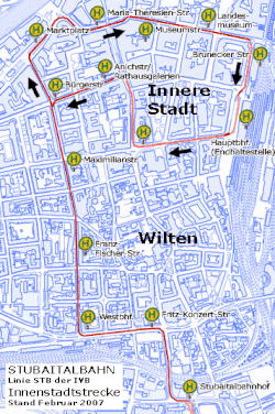 - ↑ die tram kommt! finanzierung. In: ivb.at. IVB – Innsbrucker Verkehrsbetriebe und Stubaitalbahn GmbH, archiviert vom (nicht mehr online verfügbar) am 29. Mai 2007; abgerufen am 12. Februar 2007.
