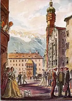 Couleurkarte: Korporierte vor dem Goldenen Dachl in Innsbruck