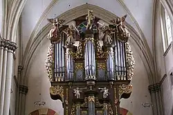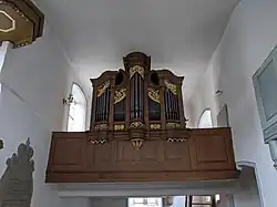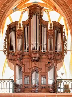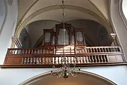 II/P | 26 | Ursprünglich hinterspielige Brüstungsorgel mit Unterpositiv als Echo. 1896 eingreifender Um- und technischer Neubau durch Johann Stockhausen; 15 Register ganz oder teilweise erhalten; restauriert und technisch rekonstruiert 1988 Gebr. Oberlinger, Nachintonation und klangliche Rekonstruktion 2011 Raab-Plenz Orgelbau, Bad Kreuznach[21] |