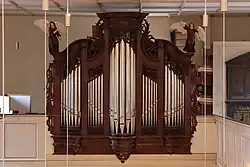 I/P | 14 | Weitgehend erhalten.[22] Die Orgel besaß im Original nur ein angehängtes Pedal, dafür im Manual das Register Grosshohlpfeif 16'. Ergänzung eines eigenständigen Pedalwerks durch Schlaad im 19. Jahrhundert. |