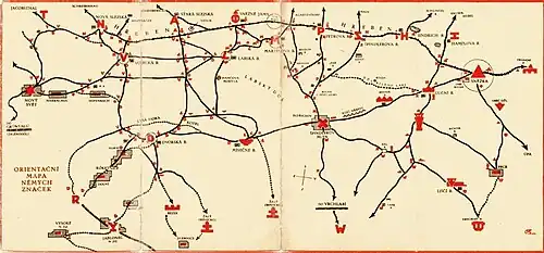 - ↑ Das Zeichen mit den drei Hausgiebeln hat sich zwar nicht verändert, wird jetzt aber für die Rýchorská bouda (Rehornbaude) verwendet, früher für die Rennerova bouda (Rennerbaude). Beide Orte liegen ca. 15 km Luftlinie voneinander entfernt.