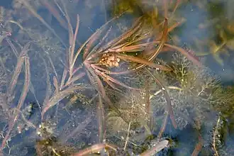 Die Turionen sind spindelförmig, bis 4 cm lang und etwa 5 Millimeter breit, sie sind zur Blütezeit noch vorhanden.