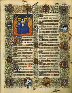| Stundenbuch des Johann ohne Furcht | um 1406–1415 | Flandern, Gent | Johann Ohnefurcht, Herzog von Burgund | Bibliothèque Nationale, Paris, ms. lat. nouv. acq. 3055 | |||
