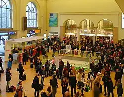 Wartende Reisende im Hauptbahnhof Hannover am 19. Januar