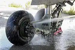 Detailaufnahme des Tandem-Hauptfahrwerkes einer Su-34