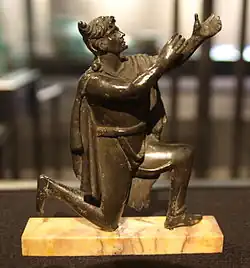 - Bronzefigur eines knienden Germanen in der Bibliothèque nationale de France in Paris (siehe Bild)