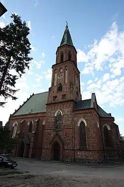 - Die Stanisław-Kostka-Kirche, ein neugotischer Backsteinbau, wurde 1905 als evangelische Kirche errichtet und ist seit 1945 katholisch
