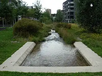 Sulgenbach in einem 250 Meter langen künstlichen Bachbett auf der Gemeindegrenze Köniz-Bern | ||