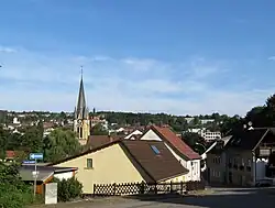 - Die katholische Pfarrkirche Allerheiligen, die 1927–1929 nach einem Entwurf des Trierer Architekten Peter Marx als tonnengewölbte Saalkirche mit mächtigen mehrgeschossigen Glockenturm in Ziegelbauweise errichtet wurde und regional zu den erstrangigen Bauten zählt.[14]