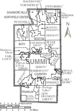 - ↑ Summit County, Ohio (Seite nicht mehr abrufbar, festgestellt im Januar 2023. Suche in Webarchiven) Info: Der Link wurde automatisch als defekt markiert. Bitte prüfe den Link gemäß Anleitung und entferne dann diesen Hinweis., Datenblatt mit den Ergebnissen der Volkszählung im Jahre 2000 bei factfinder.census.gov.