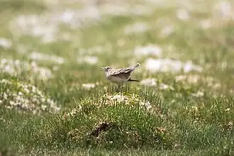 Die Sumpflerche ist nach Einschätzung von Rudolf Pätzold die einzige Lerchenart, die auch durch flache Wasserstellen läuft.[3]