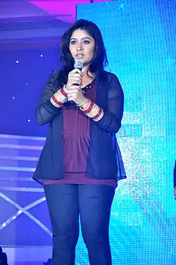 Sunidhi Chauhan (* 14. August 1983 in New Delhi) ist eine indische Playbacksängerin, die für ihre Hindi-Film-Lieder bekannt ist. Sie singt zudem auch auf Oriya, Panjabi, Marathi, Kannada, Tamil, Telugu, Malayalam und Bengalisch.