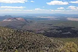 Sunset Crater und Bonito Lava Flow vom nördlich gelegenen O’Leary Peak aus gesehen