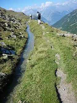 Künstliche Bewässerungssysteme müssen in den niederschlagsarmen Zonen im Wallis mindestens bis in die römische Zeit zurückreichen.[4] Im Innerwallis (insbesondere im Rhonetal und den direkt angrenzenden Talabschnitten) herrscht ein sehr trockenes Klima, weil die umliegenden Berge der Walliser und Berner Alpen die meisten Niederschläge vom Haupttal abhalten.