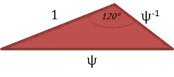 Wenn sich in einem Dreieck die Seite a zur Seite b und die Seite c zur Seite a im Supergoldenen Schnitt verhalten, dann nimmt der Winkel γ den Wert 120° beziehungsweise 2π/3 an. Im Folgenden wird diese Tatsache mit dem Kosinussatz bewiesen: