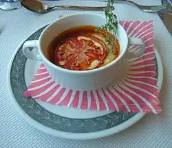 Aus einer Suppentasse dürfen nach den Regeln der Etikette nur klare Suppen getrunken werden, aber bevor die Tasse an den Mund geführt wird, müssen alle festen Bestandteile herausgelöffelt werden.