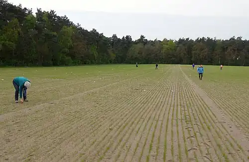 Eine Feldbegehung in Niedersachsen mit weißen Fundmarkierungen