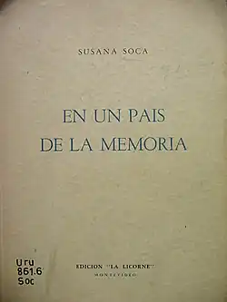 - ↑ Valentina Litvan ist eine Lateinamerikanistin. 2008 hat sie an der Universität Paris III eine Dissertation über Susana Soca veröffentlicht: Susana Soca et le champ littéraire uruguayen: projet culturel, pratique et image d’écrivain.