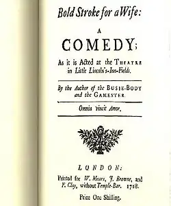 - ↑ Susanna Centlivre: A Bold Stroke for a Wife: A Comedy. John Bell, Strand, London 1797 (google.de).