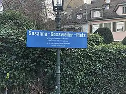 - ↑ a b Matthias Dürst: Der Susanna-Gossweiler-Platz. In: Gang dur Alt-Züri. Abgerufen am 8. Februar 2020.