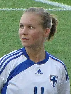 Am 24. September 2005 debütierte sie in einem Spiel gegen Polen in der finnischen Nationalmannschaft. Bis 2014 bestritt sie 80 Länderspiele und erzielte drei Tore.