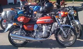 - GT 750 K: Doppelscheibenbremse vorn, Instrumente mit Metallgehäuse (statt Kunststoff), neues Tankdekor und Kühler-Seitenteil verchromt. (Farben: Pearl Blue, Candy Gold, Royal Red)