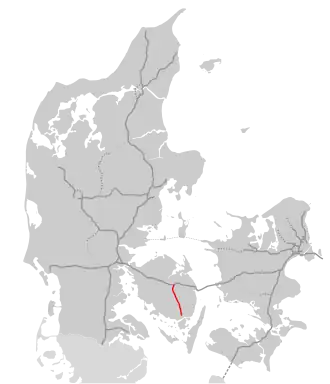 | Straßenende: | Anschlussstelle Svendborg (55° 4′ 19″ N, 10° 34′ 40″ O) |