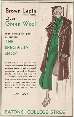 - ↑ a b c d Redaktion: „Swagger“-Pelzmäntel. In: Die Pelzkonfektion Nr. 22, Beiblatt von Der Rauchwarenmarkt, 29. Oktober 1932.