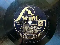Aus den Aktivitäten des Hot Club de France entstand das Label Swing, das 1937 von Charles Delaunay und Jean Berard gegründet wurde. Die ersten beiden Veröffentlichungen des Labels waren die Versionen von „Honeysuckle Rose“ und „Crazy Rhythm“, die der in Paris gastierende Coleman Hawkins am 28. April 1937 mit einer All-Star-Band einspielte, zu der Benny Carter, Django Reinhardt, Stéphane Grappelli und Aimé Barelli gehörten.