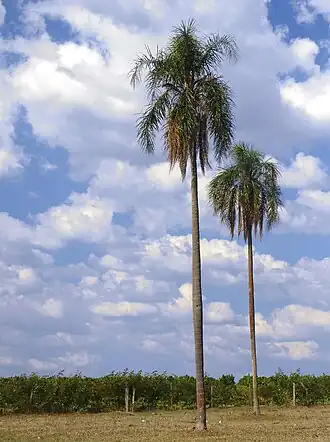 Alte Exemplare von Syagrus romanzoffiana als Relikte auf genutzter Fläche | ||||||||||||