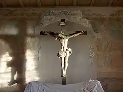 Der Chorgrundriss ist annähernd quadratisch (4,9 × 4,8 m) und wurde im 10. Jahrhundert ergänzt. An der Südwand findet sich ein parabolisches Fenster, das auf das hohe Alter der Kirche hindeutet. Zum Chorraum führen drei flache Stufen unter einem Rundbogen. Links und rechts der Stufen steht jeweils ein Eckaltar; auf dem linken eine Skulptur vermutlich des Marcianus oder, weniger wahrscheinlich, des Hl. Silvester,[4] aus dem 14. Jahrhundert, rechts eine Marienfigur.