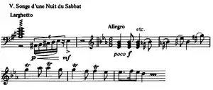 - Hexensabbat (Songe d’une nuit du Sabbat), Larghetto (c-Moll, 4/4-Takt) – Allegro (Es-Dur, später C-Dur, 6/8-Takt); Dauer: ca. 10 min