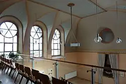 Die blau ausgemalte Decke mit aufgemalten goldenen Sternen als Verzierung, heute nahezu vollständig erneuert, wie auch der von außen erkennbare neuorientalische Stil zeugen vom Selbstbewusstsein der jüdischen Gemeinde zur damaligen Zeit.