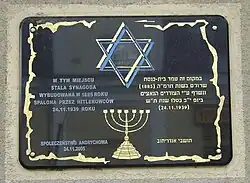 Im November 2001 wurde eine Gedenktafel zur Erinnerung an die ehemalige Synagoge aufgestellt.