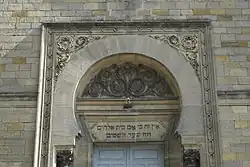 Die Synagoge wurde nach Plänen des Architekten Charles Demoget im maurischen Stil erbaut. Das Gebäude aus Hausteinen wird von einem Satteldach gedeckt. Auf der Giebelspitze sind die Gesetzestafeln angebracht. Das Portal besitzt eine hebräische Inschrift. Der Hufeisenbogen über dem Portal ruht auf zwei schmalen Säulen. Die Fassade ist von einer Rosette mit Davidstern durchbrochen.