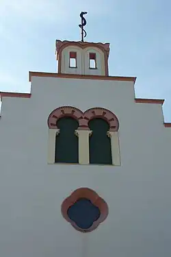 Über einem rechteckigen Grundriss erhebt sich ein zweigeschossiger Bau, der von einem Satteldach gedeckt wird. Die beiden gestuften Giebel sind Stilelemente der Gotik. Die drei Portale der Westfassade besitzen Hufeisenbögen und ägyptisch anmutende Palmettenkapitelle. Die Giebelabschlüsse bestehen im Westen aus den Gesetzestafeln und im Osten aus der Ehernen Schlange.