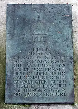 Ein Teil der Friedrichstraße heißt heute An der Synagoge. Neben dem Synagogengrundstück wurde am 9. November 1993 eine Gedenkstätte eingeweiht.