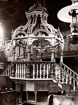 - ↑ Maria and Kazimierz Piechotka: Heaven’s Gates. Wooden synagogues in the territories of the former Polish-Lithuanian Commonwealth. Seite 458 ff. Polish Institute of World Art Studies & POLIN Museum of the History of Polish Jews, Warschau 2015, ISBN 978-83-942048-6-0. Ausführliche Beschreibung.